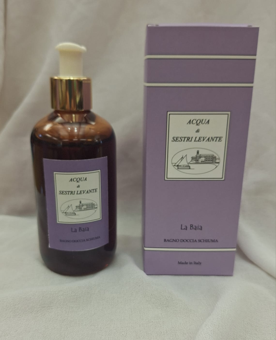 Bagno Doccia La Baia, fragranza femminile, floreale e cipriata. Avvolgente come il tramonto della Baia di Sestri Levante. Il glicine la esalta per la sua fragranza e il suo colore..